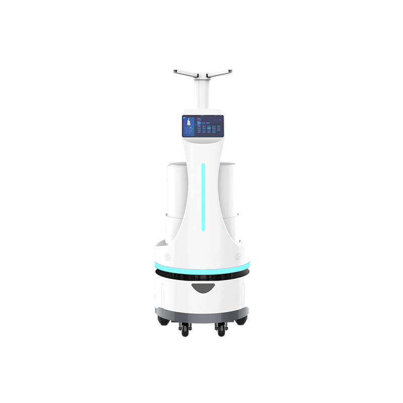 智能消毒機(jī)器人,以機(jī)器人為載體,自主移動(dòng)式多點(diǎn)自主消毒。通過稀釋消毒液并進(jìn)行霧化,消毒液經(jīng)過霧化后形成微小的顆粒,有效抑制附著在物體表面上的微生物、細(xì)菌、病毒,按照實(shí)際消毒需求,自主規(guī)劃消毒路線,全自動(dòng)室內(nèi)無人駕駛,可對(duì)室內(nèi)空間物表和空氣進(jìn)行360°無死角消毒,15分鐘可消毒1000m3空間,減少人工接觸,避免人員感染風(fēng)險(xiǎn)。